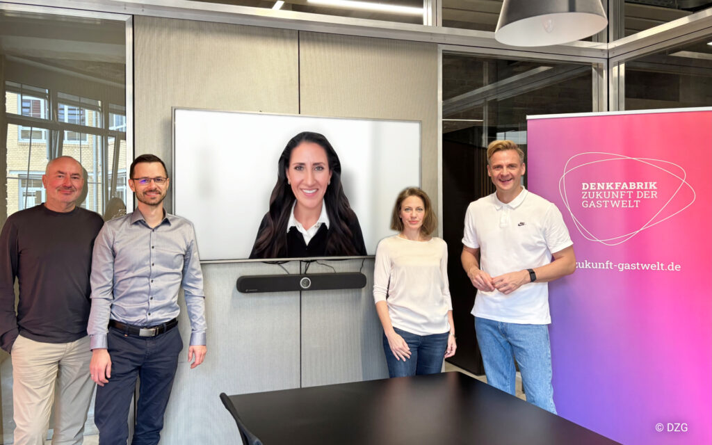 Auch nach dem offiziellen Ende gab es noch einiges zu besprechen (von links): Thomas Müller (DZG-Mitglied und Roundtable-Ideengeber), Norman Ladig (Booking), Homeira Amiri (DZG), Alexandra Wolframm (Booking) und Dr. Marcel Klinge (DZG). Bild. DZG.